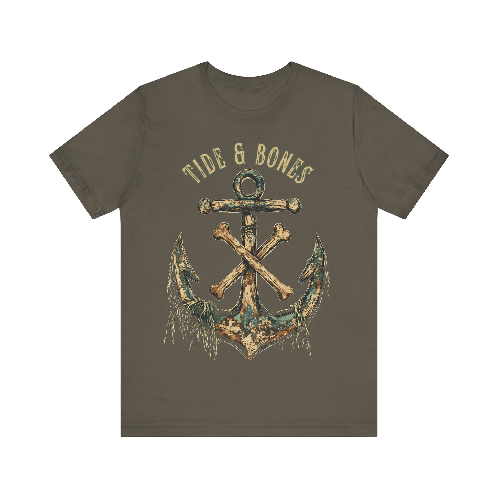 This anchor and crossbones T-shirt by Tide & Bones gives off a cool, edgy vibe. Perfect for those who love nautical or pirate-themed designs, it's great for casual outings or as a statement piece.